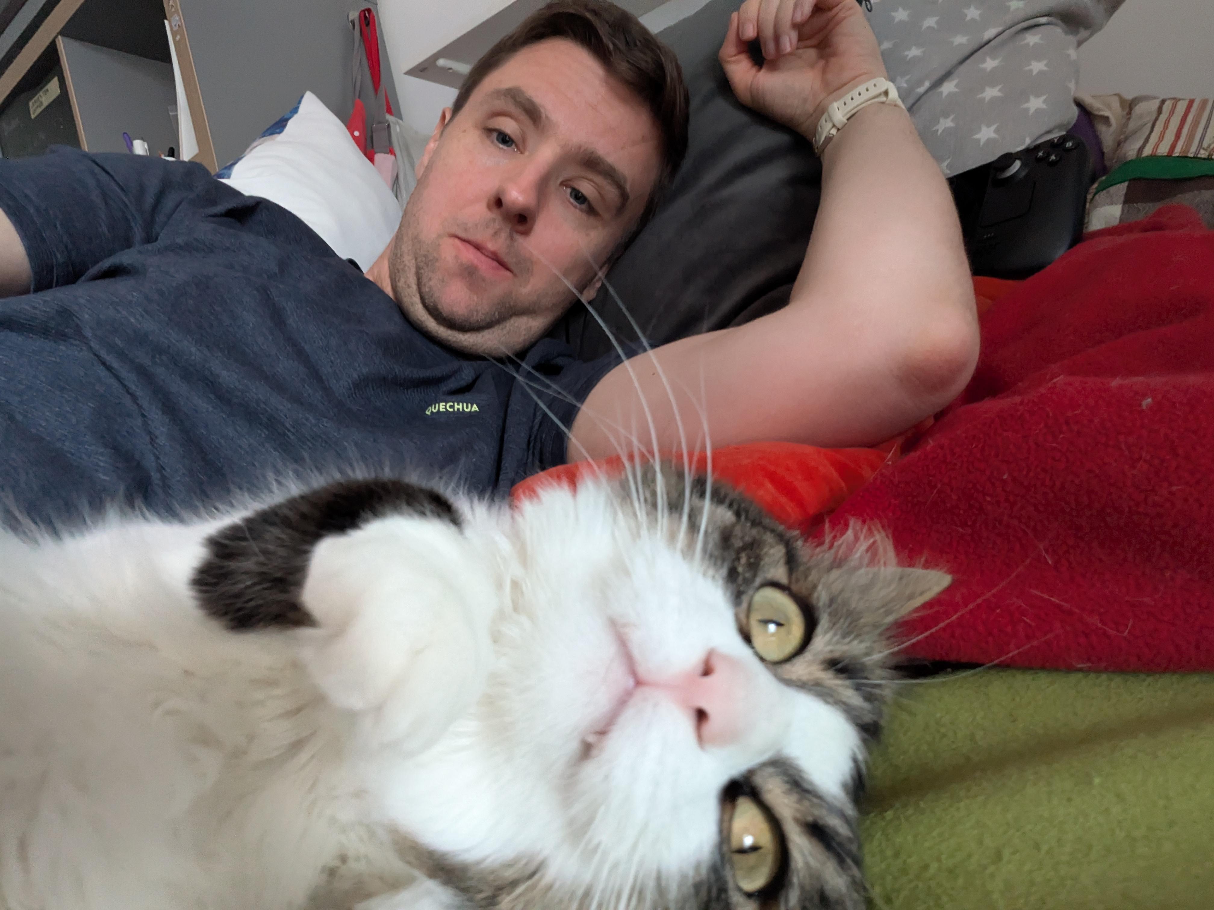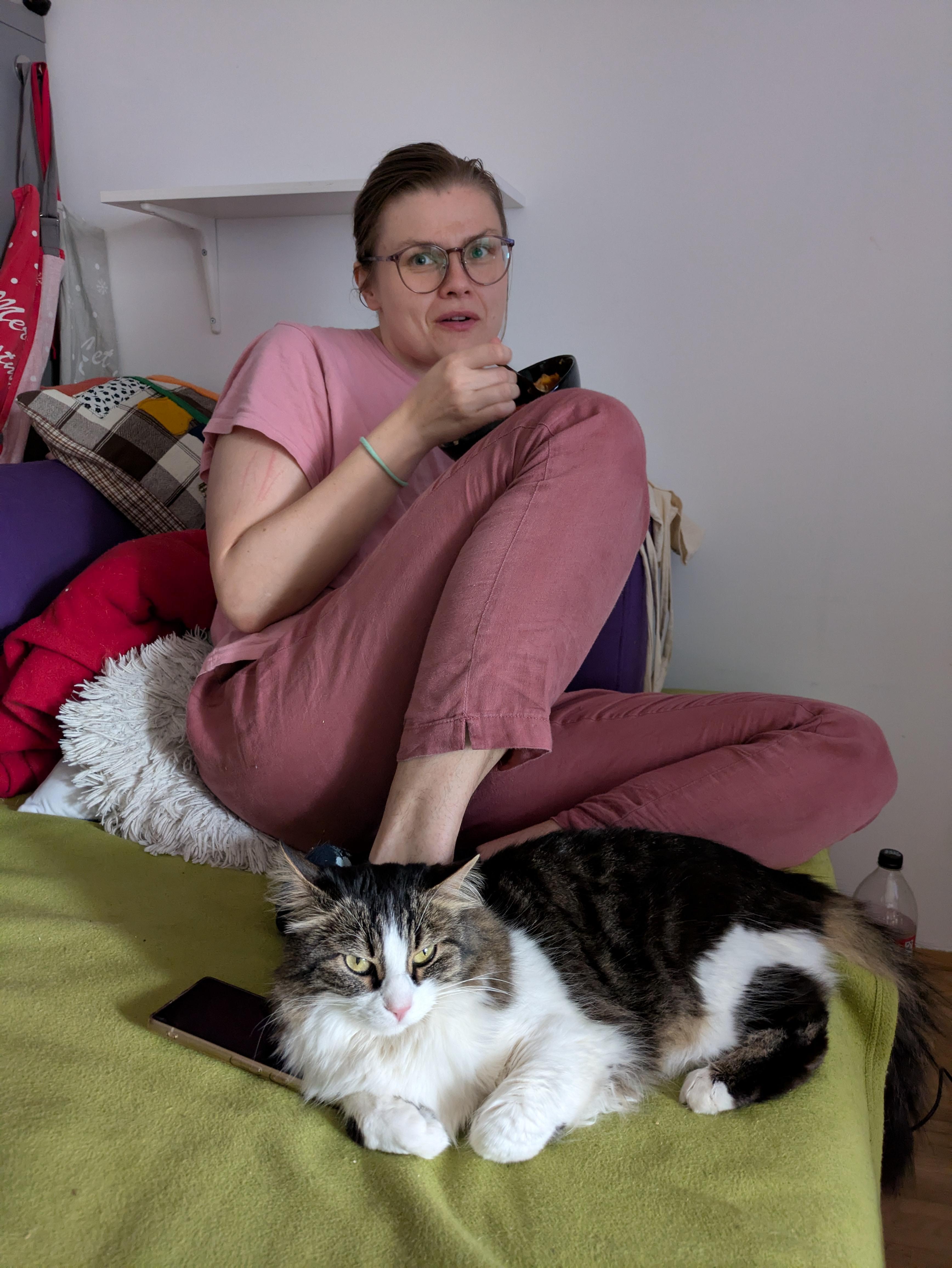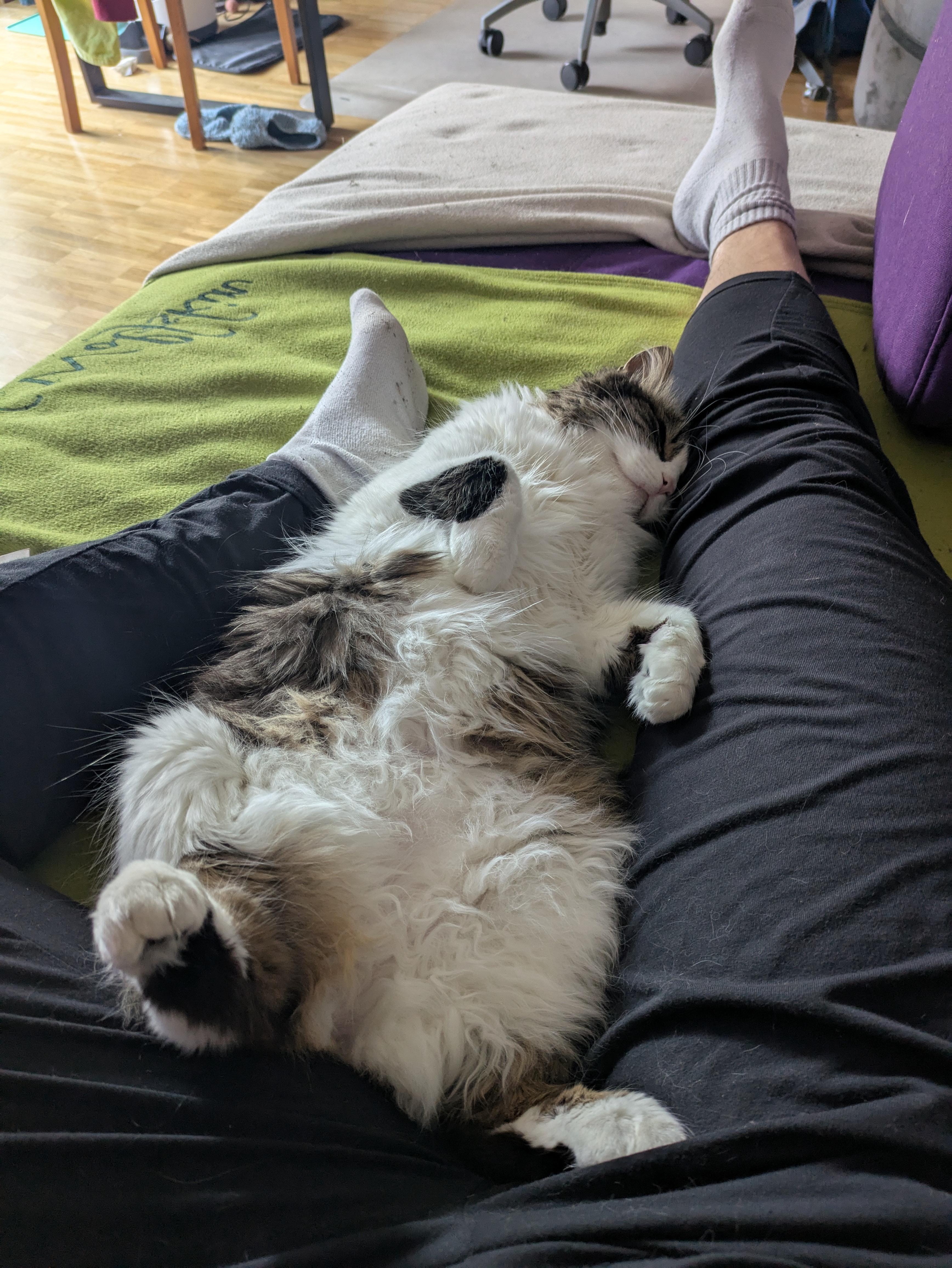 Kot śpi między nogami