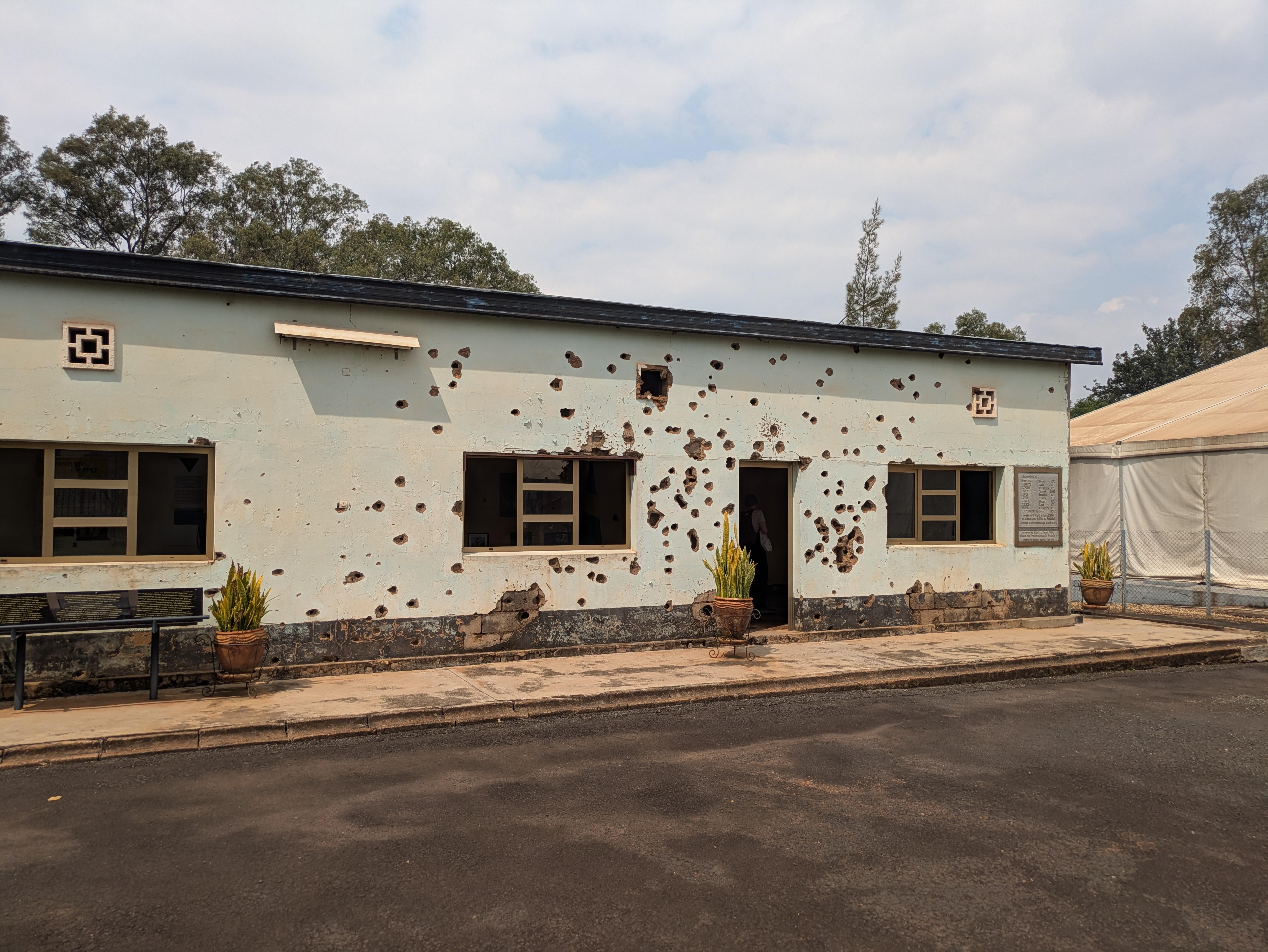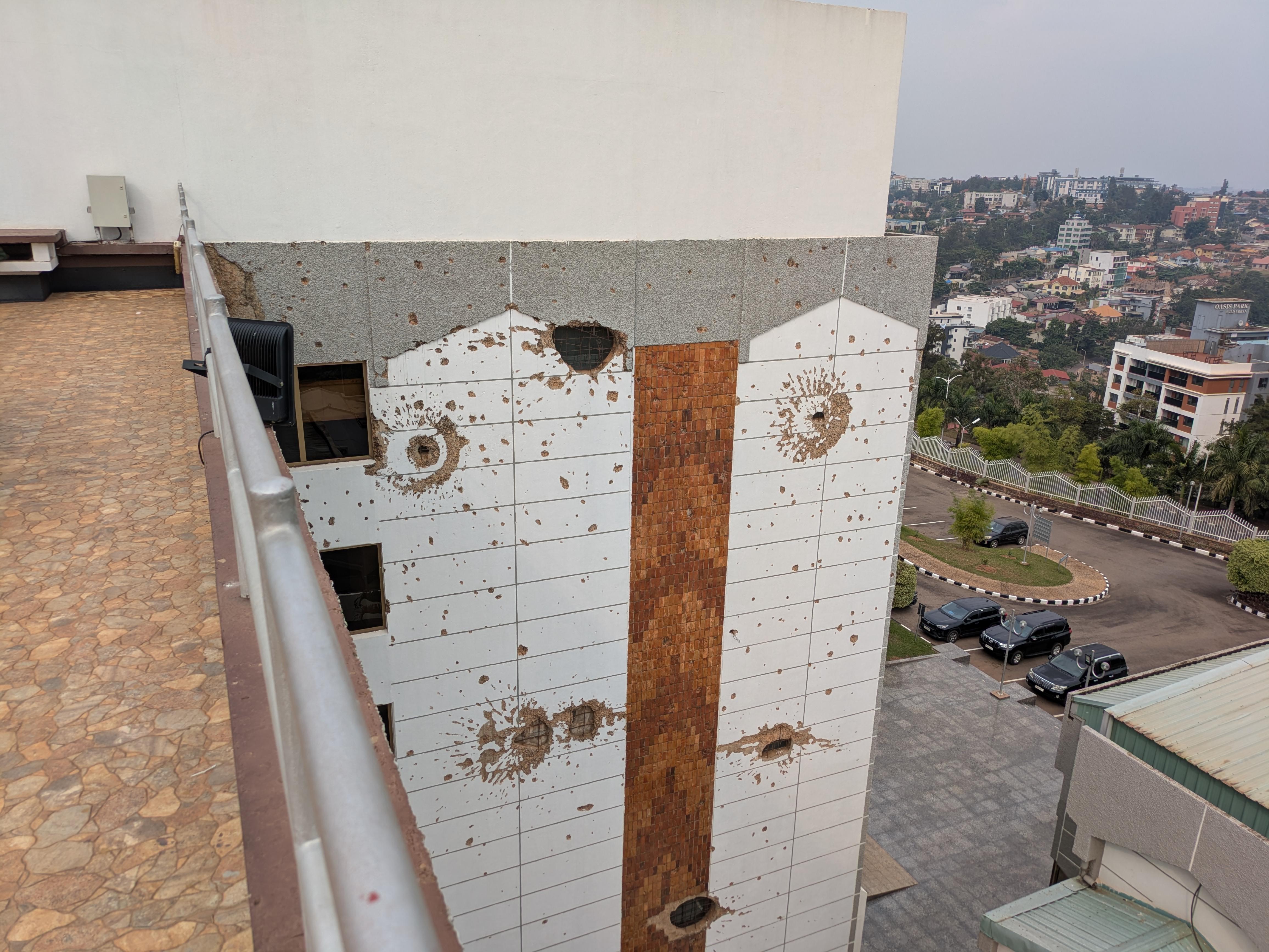 Gun Marks on the Rwandan parliament