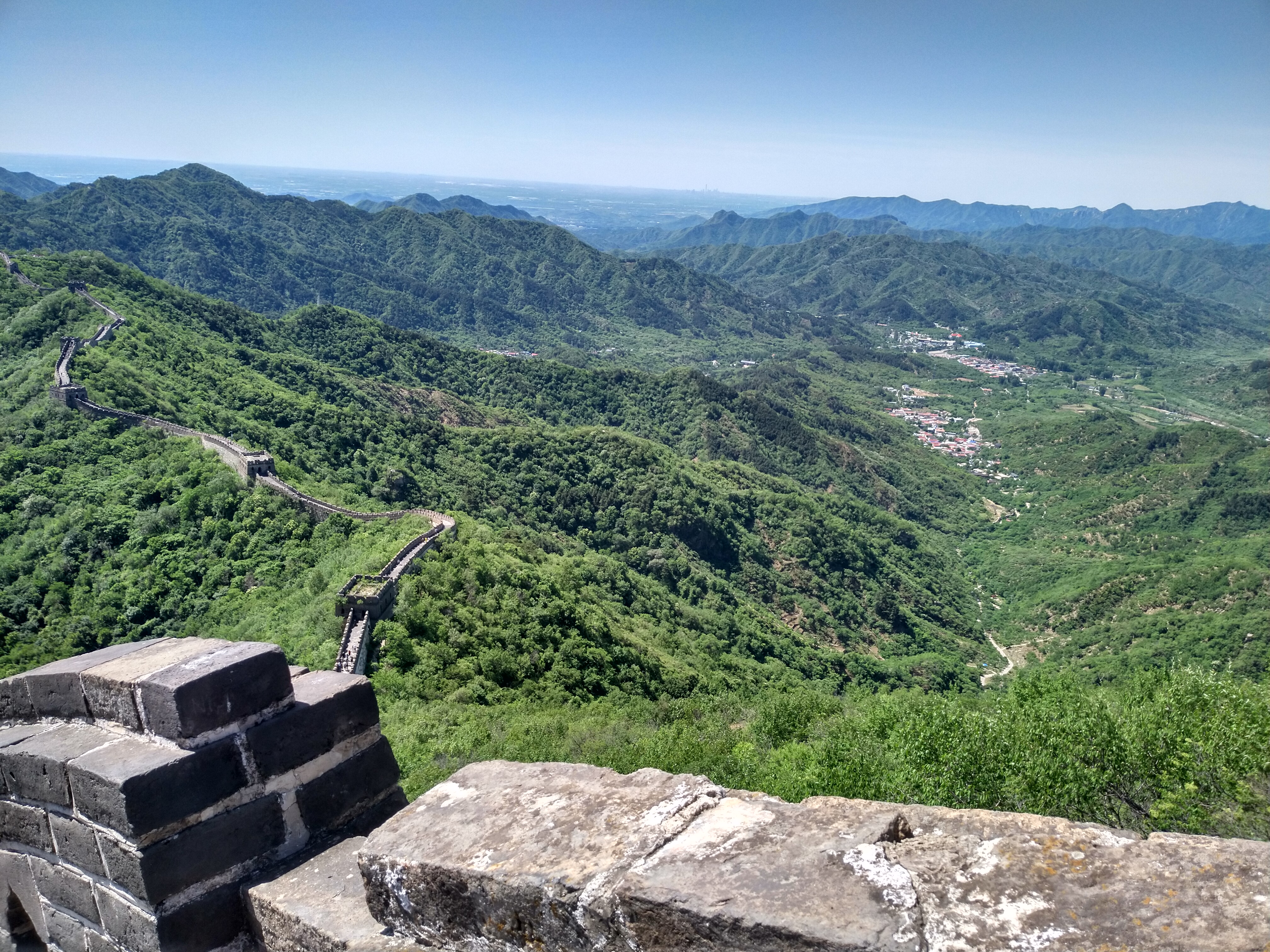 View from and of the Great Wall of China, which we climbed