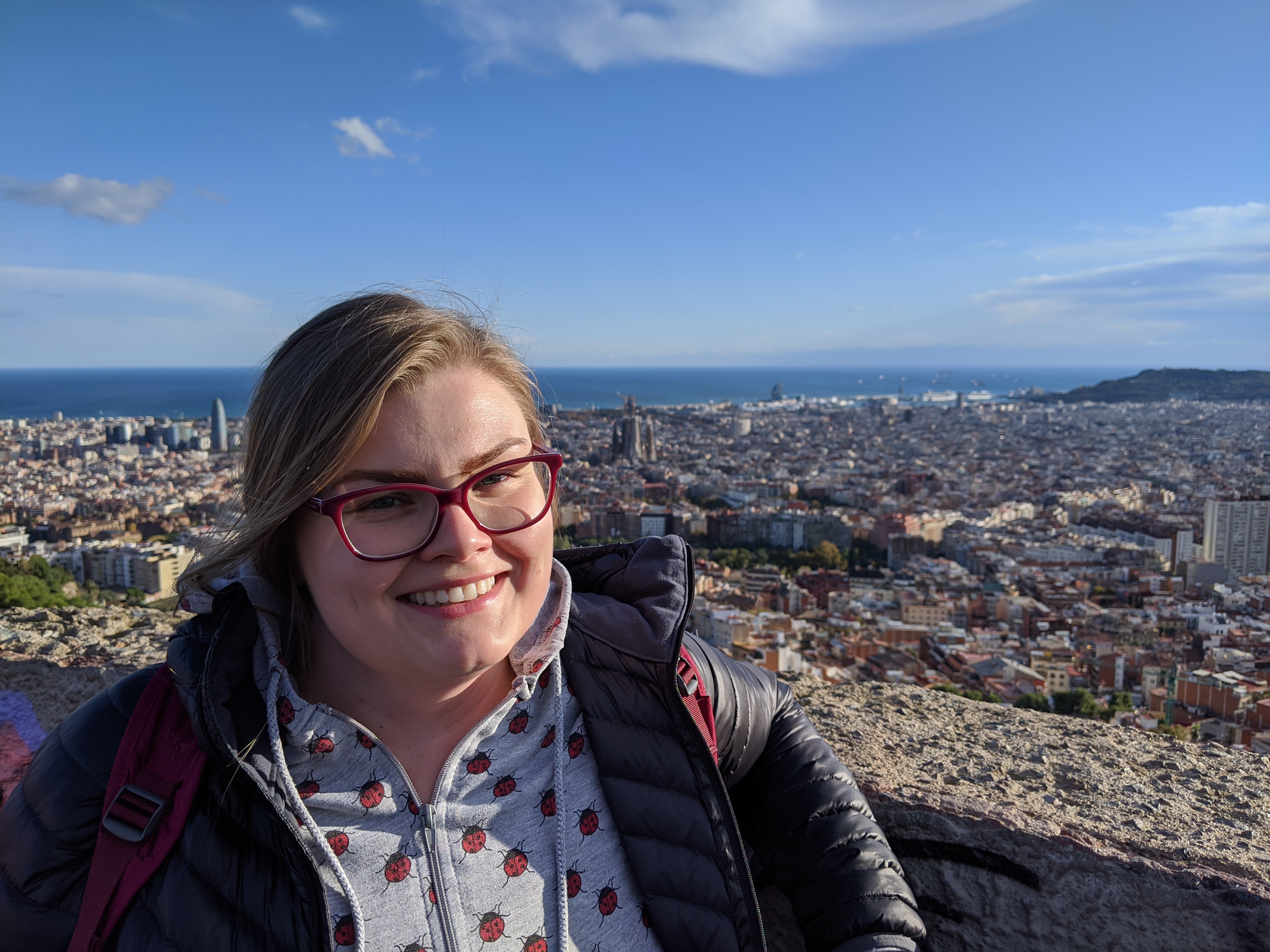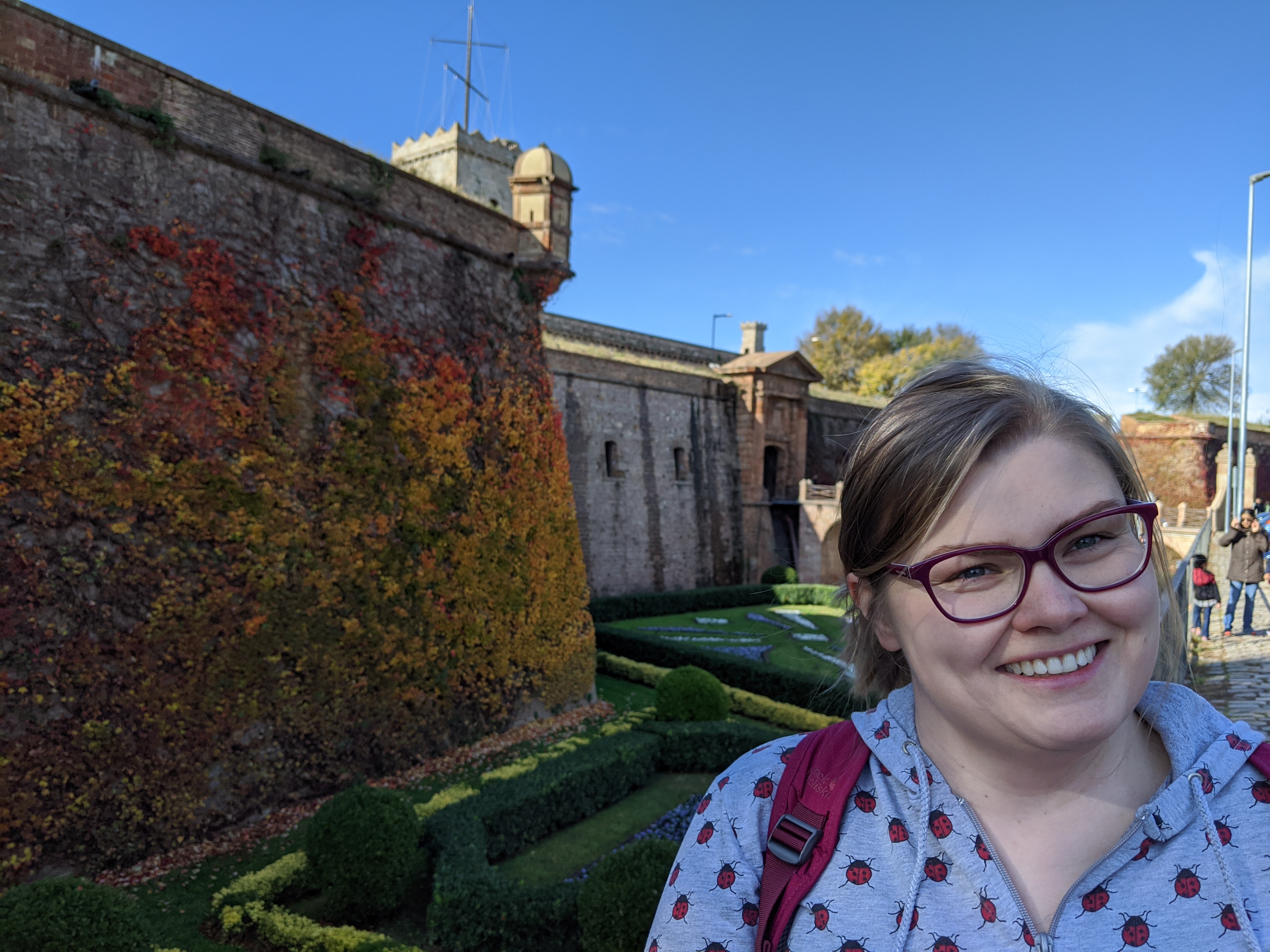 In front of Montjuic castle (not pictured: group of Polish tourists)
