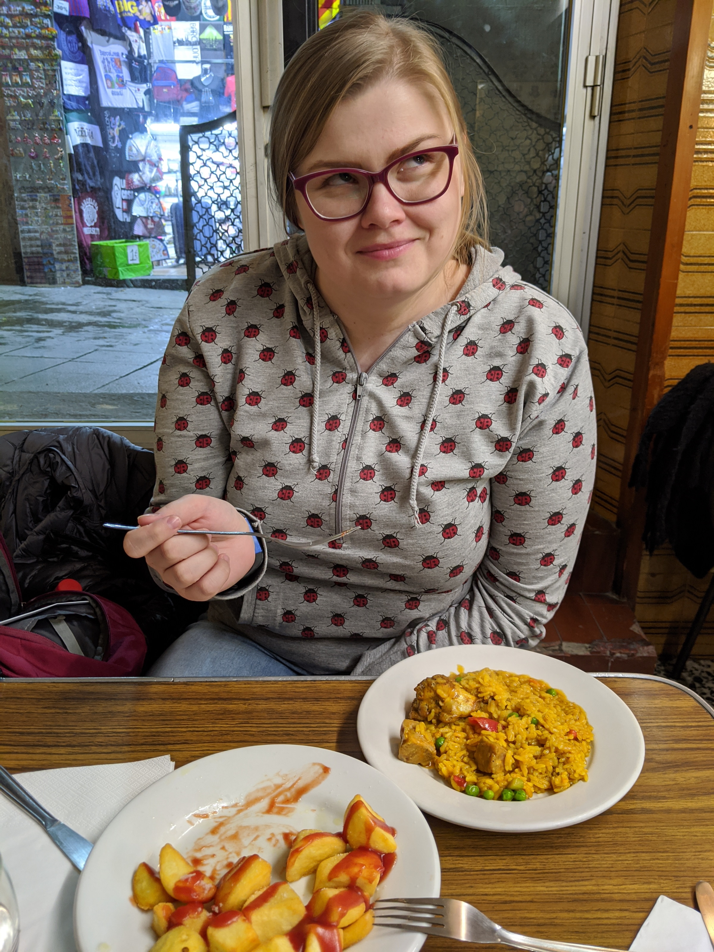 Eating Paella and Patatas Bravas