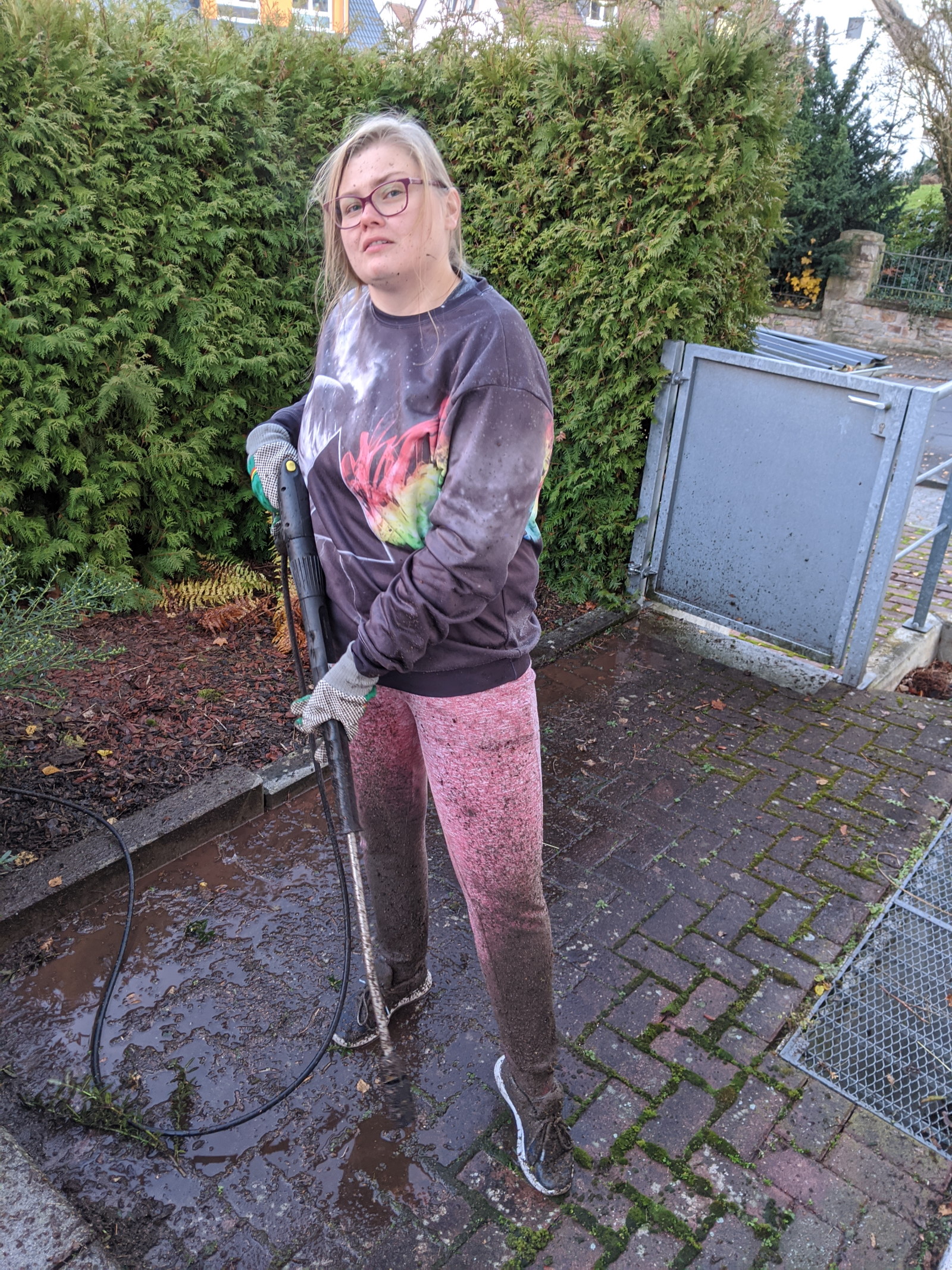 Power washing our old place's terrace