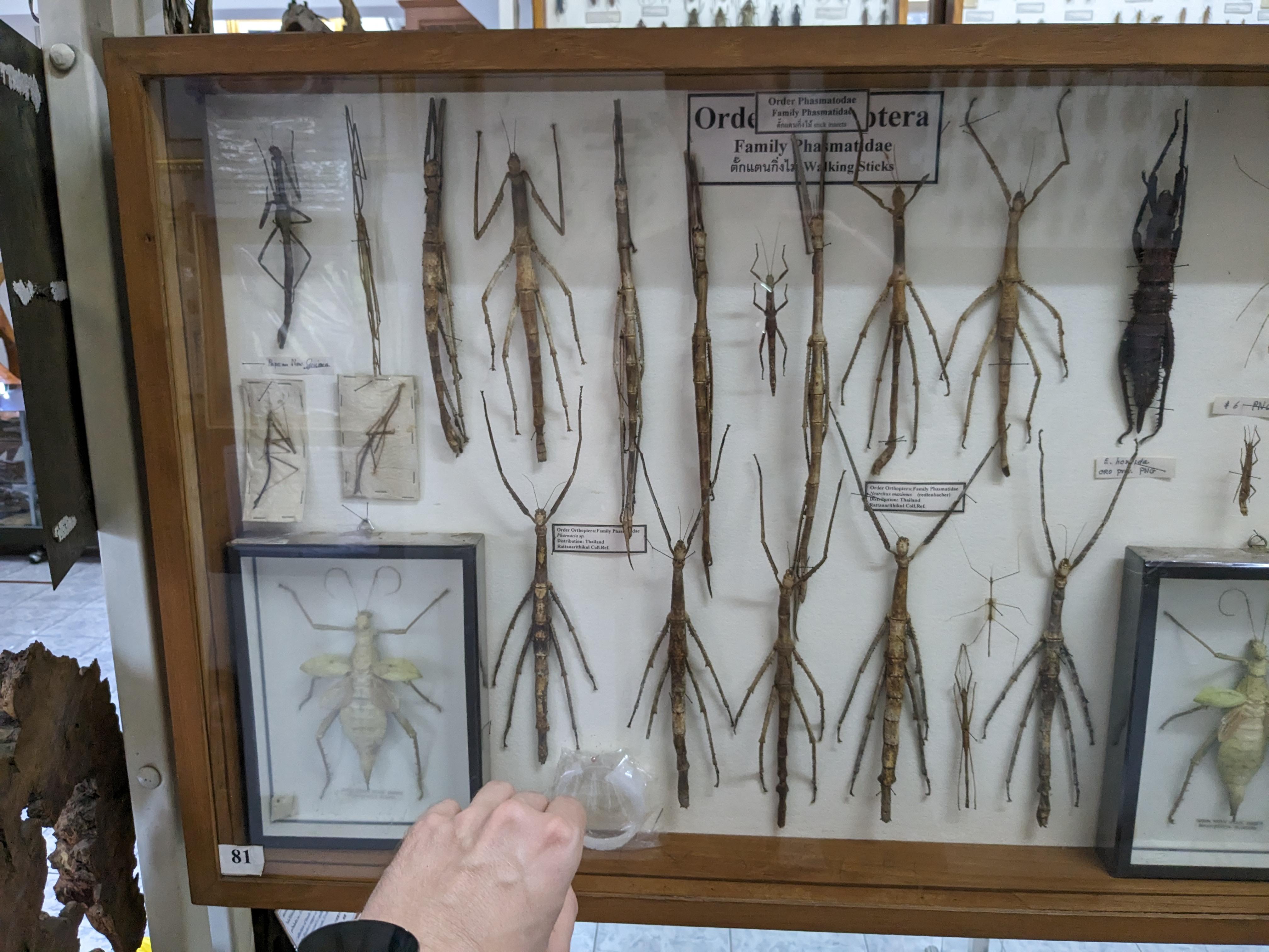 Insect museum, hand for scale